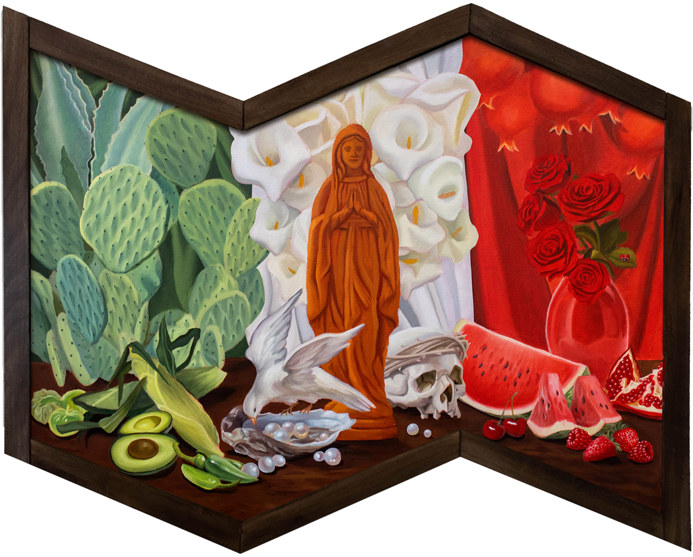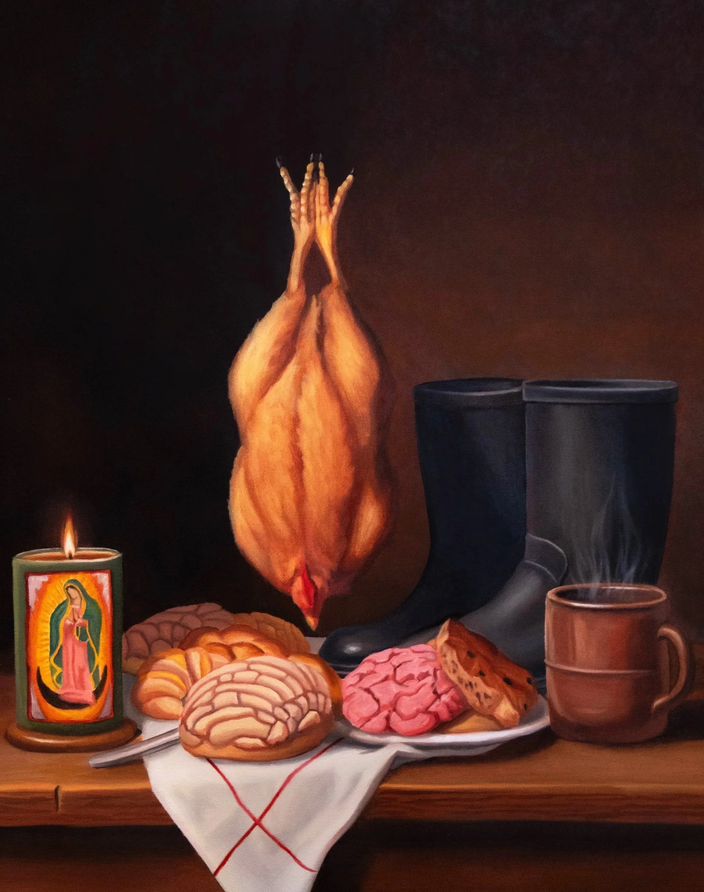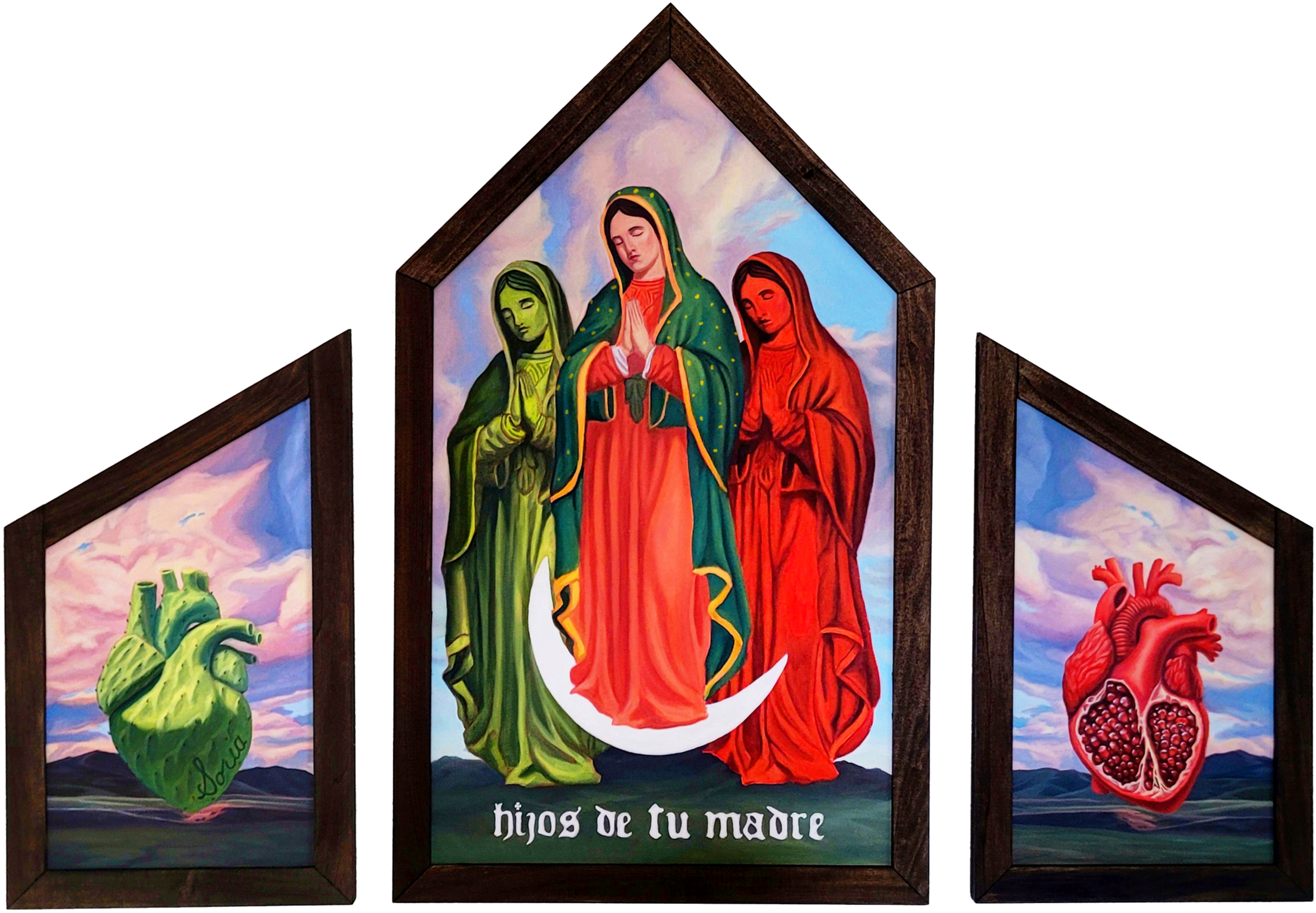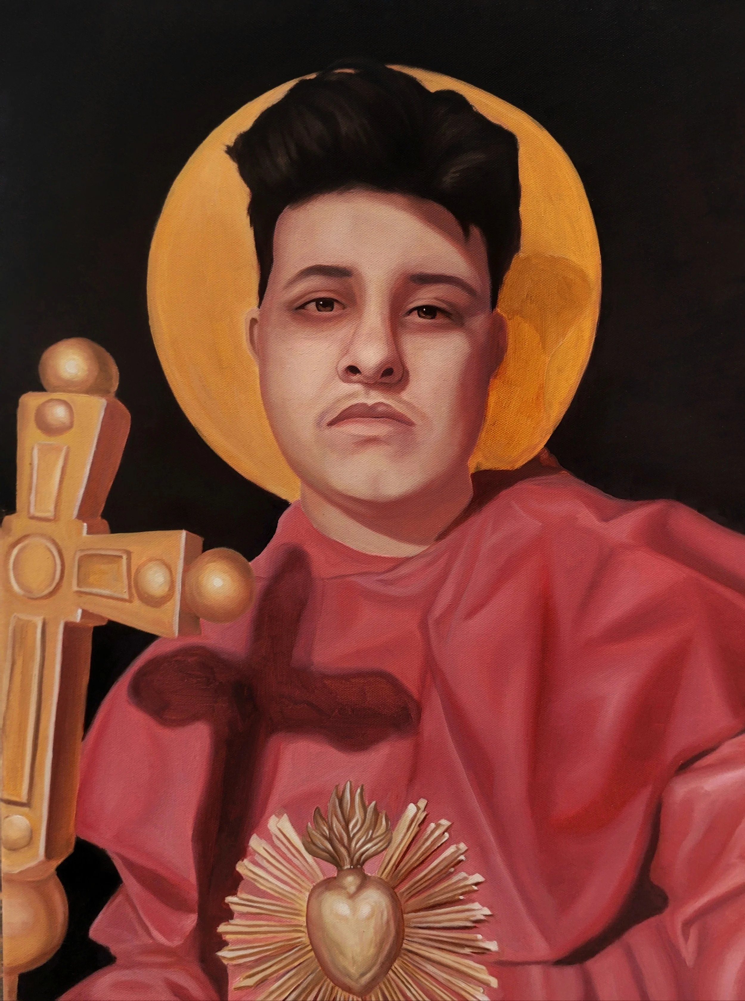 Drawing from a background shaped by Catholicism, familial gardens, and growing up closeted within a traditional Hispanic household, Soria incorporates religious iconography, domestic materials, and figurative imagery across painting, assemblage, and woodworking.Through an embrace of vulnerability as a critical and generative force, his work holds contradiction, including faith and doubt, devotion and resistance, tenderness and tension, allowing private memory to become collective experience. These inquiries into inherited belief systems, generational trauma, and the construction of identity ultimately frame the body as a site of connection, grief, love, and transformation.