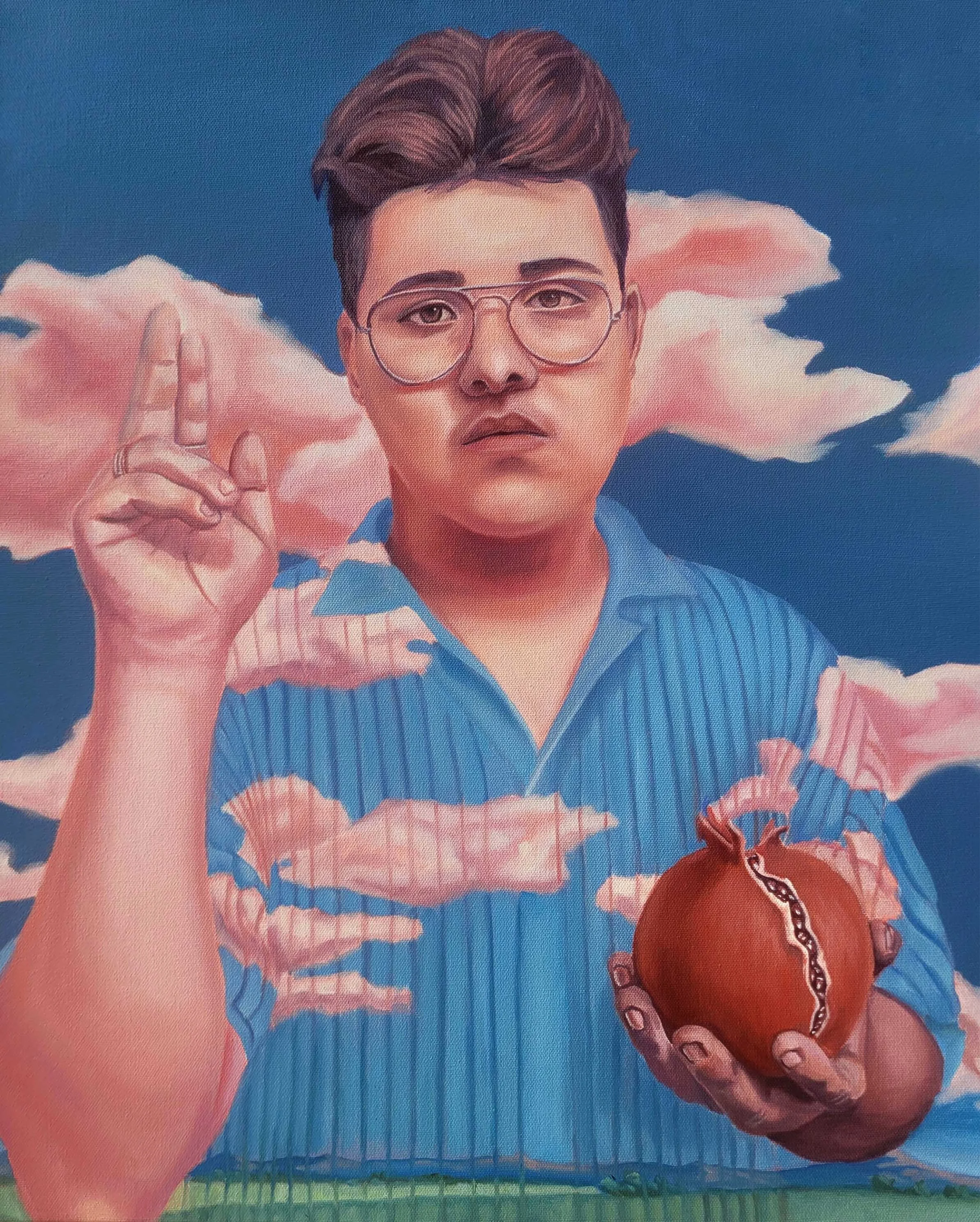 Together, nopales and pomegranates serve as a tribute to the people who shaped me, the culture that grounds me, and the love I cultivate. For much of my life, I suppressed my identity and believed I was unworthy of love and incapable of coming out of the closet. I’ve learned to cut fruit and offer the same tenderness that I deprived myself of for 22 years of my life.